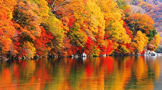 호수를 둘러싼 나무들이 울긋불긋 물들어 호수 수면위로 환상적인 풍경을 만들어냅니다. 특히 호수에서 바라보는 산의 배경과 단풍이 어우러져 특히 사진 찍기 좋은 장소로 알려져 있습니다. 주젠지호수는 다양한 수상 스포츠와 산책로가 있어 단풍을 감상하며 여유로운 시간을 보낼 수 있습니다.