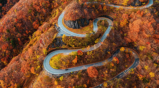 일본의 알프스라 불리는 북알프스를 지닌 도야마는 자연경관이 뛰어나 단풍 시즌에 그 매력이 한층 더 빛을 발합니다. 웅장한 산맥과 다채로운 색으로 물든 자연 속에서 단풍을 즐길 수 있습니다. 현재는 우리나라에서 도야마까지 바로 갈 수 있는 직항편은 없지만 가을 시즌에는 따로 전세 항공기가 다닐 정도로 인기가 높습니다. 특히 부모님과 단풍 여행을 계획한다면 도야마를 추천합니다.
