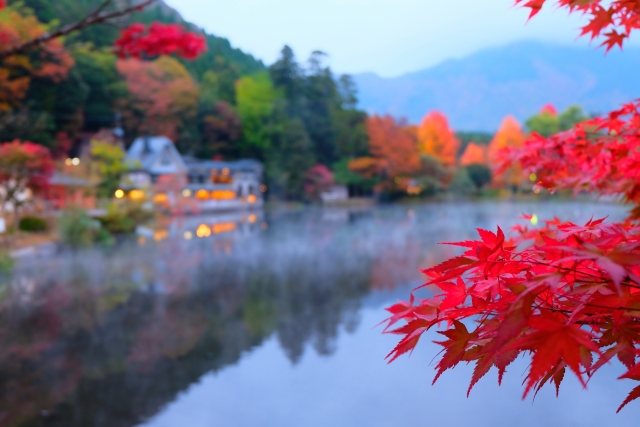 규슈의 대표 관광지인 유후인하면 떠오르는 긴린코, 호수의 잔잔한 수면에 비친 단풍은 마치 한 폭의 그림처럼 아름답습니다. 아침에는 수면 위로 안개가 피어올라 더욱 신비로운 분위기를 연출하여 많은 방문객들을 매료시킵니다. 근처의 료칸에 묵으며 온천과 단풍을 즐기기 좋은 최적의 단풍 명소입니다.