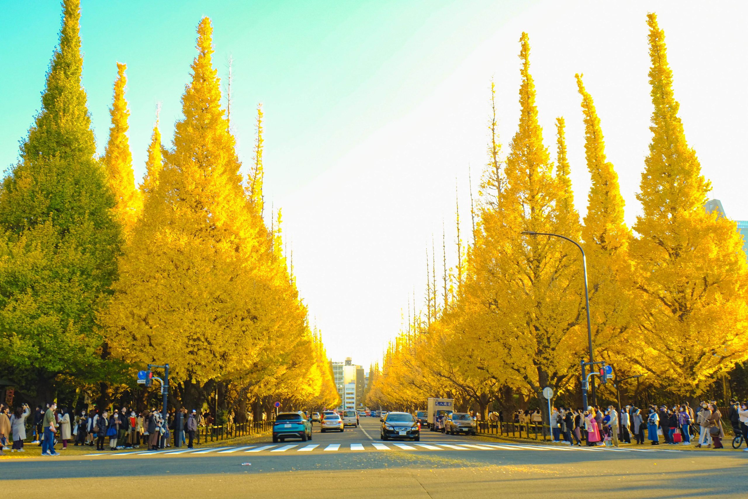 메이지신궁가이엔은 약 300m 거리를 따라 은행나무가 줄지어 있어 노랗게 물드는 모습은 장관을 이룹니다. 이 은행나무의 은행잎이 떨어질 때면 도로가 온통 금빛으로 물들어 금빛로드로 불리기도 합니다. - 신주쿠교엔