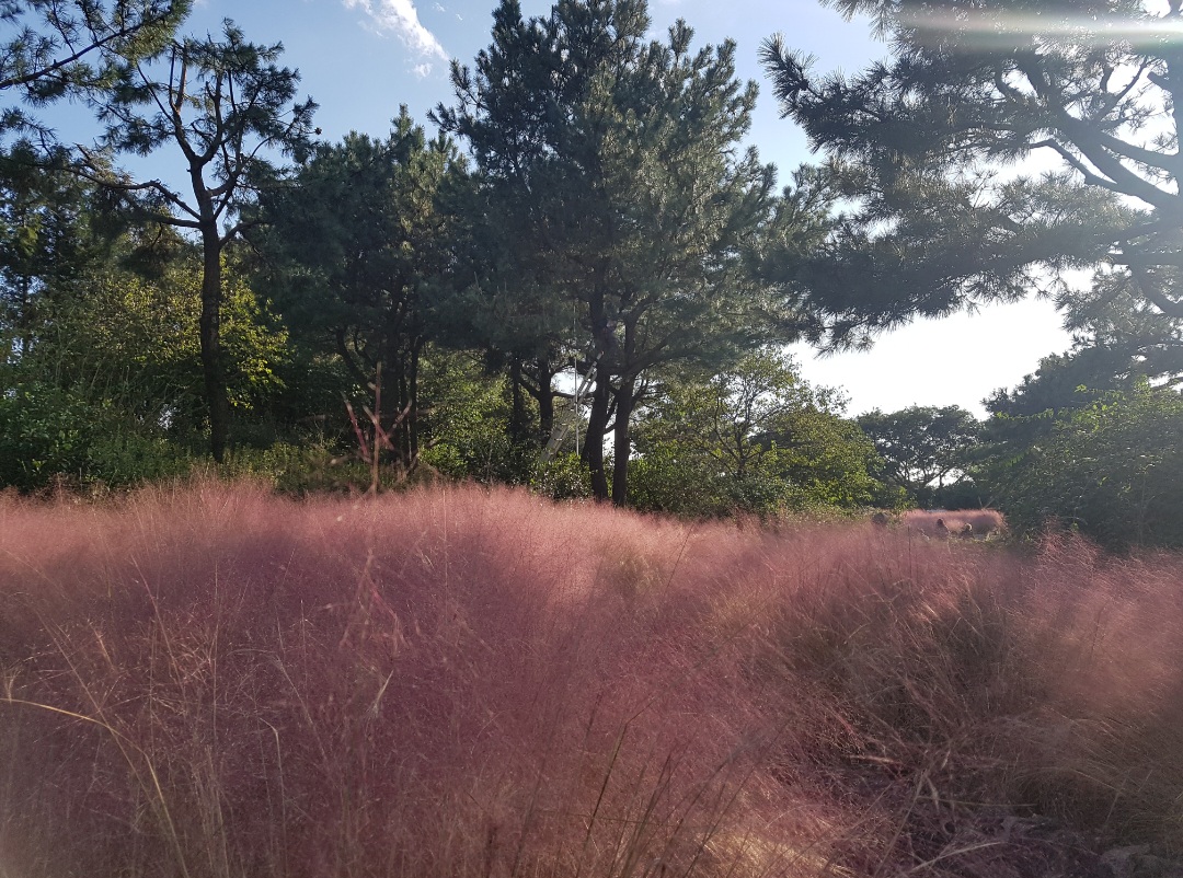 핑크뮬리 사이에 우뚝 솟은 소나무는 이곳의 필수 포토존이니 놓치지 마시기 바랍니다.