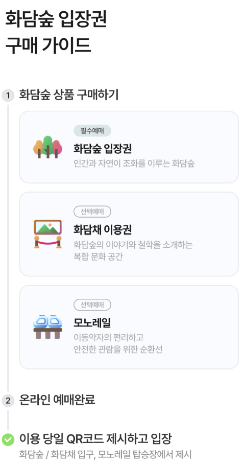 화담숲 입장권, 화담채, 모노레일 입장권 예매는
