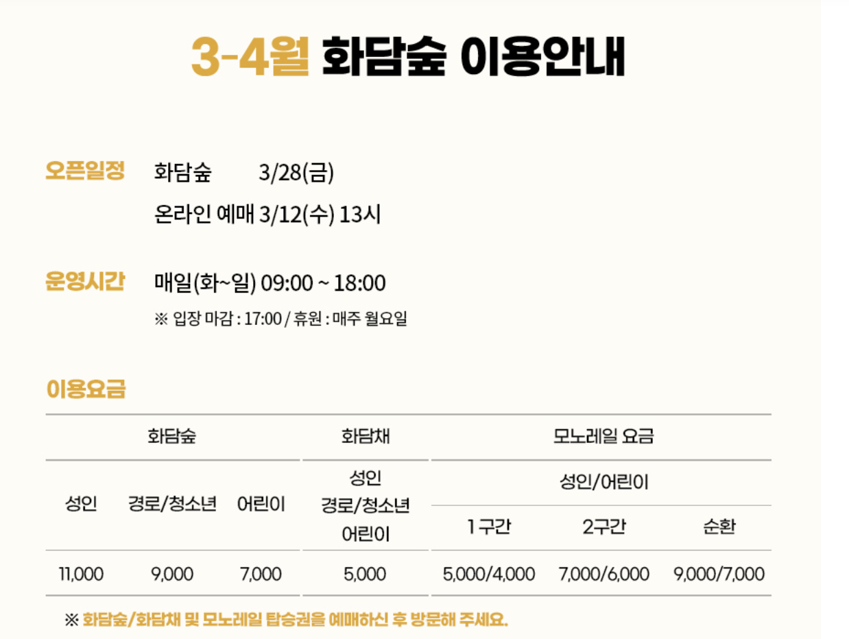 취향에 따라 화담채와 모노레일도 선택하여 예약할 수 있습니다.