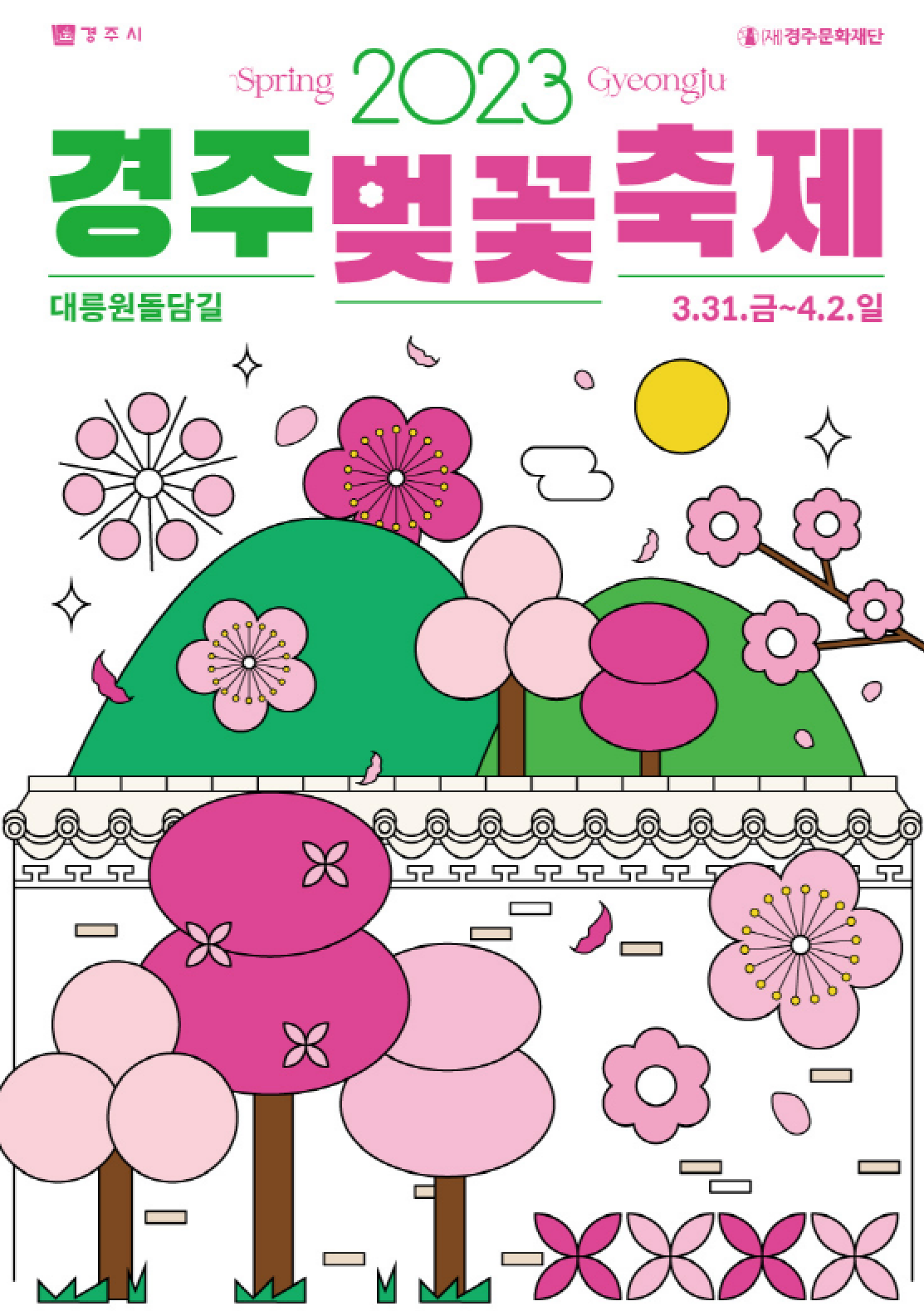 2023 경주벚꽃축제가 3월 31일부터 4월 2일까지 3일간 대릉원돌담길과 봉황대 광장에서 열립니다.